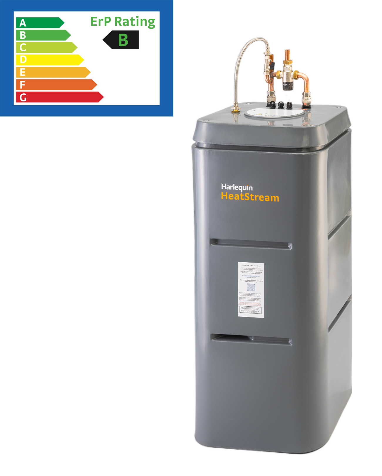 Once the Harlequin HeatStream is installed, it is filled with water using the filling loop provided. This static body of water is then heated using the built-in immersion heaters. When a hot water tap is opened the cold mains are passed through a 22-mm corrugated stainless steel coil inside the HeatStream. Heat is transferred from the static hot water to the incoming cold water inside the coil and exits through the provided mixer valve as temperature-controlled mains pressurised hot water.